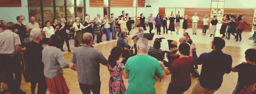 Participation des musiciens et danseurs de FolK à BourK au bal des inter-ateliers organisé par la Grange-Rouge dans la belle salle de Montpont-en-Bresse samedi 14 janvier 2023